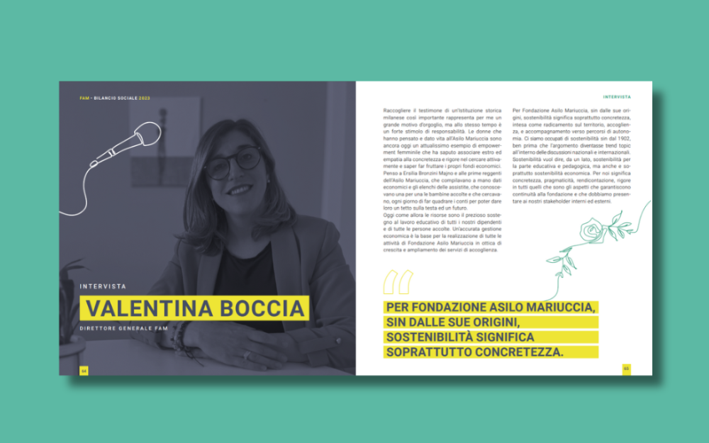 Fondazione Asilo Mariuccia’s 2023 Social Report is not just an accounting document, but a narrative that celebrates over 120 years of social commitment. The document collects testimonies from components of the organizational structure, figures from the social and justice world, and beneficiaries of the Foundation’s services. Not only: inside are also included a vision of the international context, with the citation of UN Sustainable Development Goals, and the connection to the Foundation’s future projects.