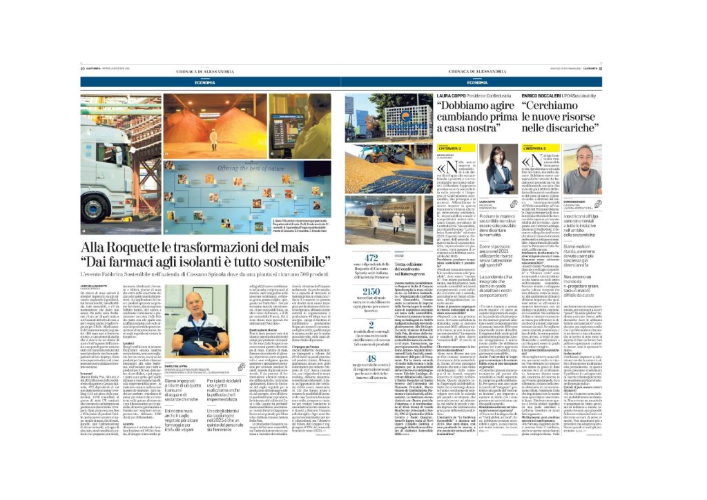Making known the sustainability best practices of companies in the Province of Alessandria, stimulating discussion and laying the foundations for an open and engaging comparison on these topics. In 2021, the Sustainable Factory event was held at the Cassano Spinola plant of Roquette Italia, the leading company of the third edition of the project. Sustainable Factory stems from an idea by Confindustria Alessandria and Amapola in collaboration with the University of Eastern Piedmont. The annual appointment has brought together the territory’s business realities since 2019 to talk about projects, experiences, sustainability visions and share ideas and best practices.Sustainability starts from a corn kernel