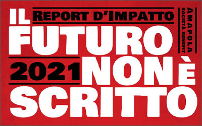 È online il primo report d’impatto di Amapola! Il futuro non è scritto, è questo il messaggio che dà il titolo al documento. «Abbiamo scelto questo titolo perché siamo convinti nel profondo che ognuno di noi possa dare un contributo, concreto e sincero, alla costruzione di un mondo più responsabile e sostenibile» spiega il nostro fondatore Luca Valpreda. «Il primo criterio secondo cui abbiamo individuato le nostre finalità di beneficio comune è stata l’autenticità. Siamo una agenzia di comunicazione composta di persone che della sostenibilità hanno fatto una scelta di vita, professionale e personale. Perché sia realizzabile, il nostro impegno deve essere coerente con quello che siamo, con le nostre competenze e potenzialità».
