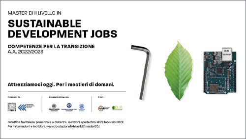 Le professioni del futuro saranno quelle legate alla sostenibilità. Nasce da questa premessa il Master di II livello in Sustainable Development Jobs promosso dall’Università di Milano-Bicocca e da Fondazione G. Feltrinelli, in collaborazione con il Politecnico di Milano, l’Università degli Studi di Milano, l’Università degli Studi di Pavia, l’ASviS (l’Alleanza italiana per lo Sviluppo Sostenibile) e la RUS (la Rete delle Università per lo sviluppo sostenibile). Il percorso multidisciplinare, primo nel suo genere in Italia, ha l’obiettivo di formare figure innovative e trasversali a istituzioni, enti di ricerca e organizzazioni internazionali, in grado di lavorare ai più svariati livelli della sostenibilità. Si rivolge sia a studenti che intendono avviare un percorso professionalizzante sia a professionisti del settore in cerca di un piano di aggiornamento.