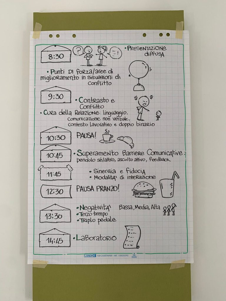 L’intervento è avvenuto attraverso un laboratorio esperienziale potenziato da esercitazioni, simulazioni e role playing, con il fine di coinvolgere attivamente i presenti, facendo emergere e tenendo in conto le esperienze, i bisogni e le aree di miglioramento di ognuno.