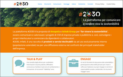 #2030, infatti, è una raccolta di prodotti e servizi declinabili sia ad uso esclusivamente interno (popolazione aziendale) sia per una diffusione esterna nei confronti dei principali stakeholder dell’impresa. Gli strumenti messi a disposizione sono volti a favorire il coinvolgimento (Engage) e la diffusione e condivisione di informazioni e buone pratiche di sostenibilità (Talk&Play).